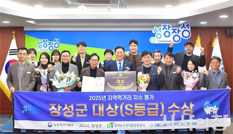장성군이 농림축산식품부와 한국농수산식품유통공사가 함께 실시한 ‘2025년 지역먹거리지수 평가’에서 가장 높은 ‘에스(S) 등급’을 획득하며 ‘대상’을 수상했다.[시사의창=송상교기자]