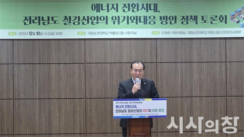 [시사의창=송상교기자] 이개호 국회의원실은 "국립순천대학교(총장 이병운)와 10일 순천대 박물관 대회의실에서 ‘에너지 전환시대, 전라남도 철강산업의 위기와 대응 방안’을 주제로 정책토론회를 공동 개최하고, 빠르게 변화하는 산업환경 속에서 광양만권 철강산업의 지속가능한 발전 방향을 논의했다"고 밝혔다.