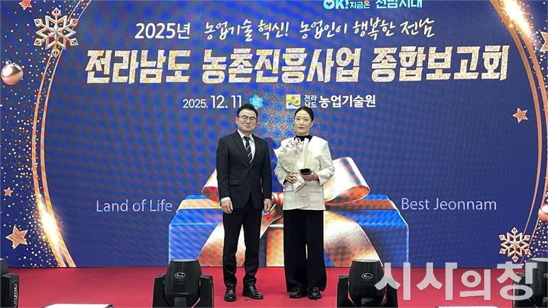 [시사의창=송상교기자] 곡성군농업기술센터 소속 이율 농업연구사가 전라남도 농촌지도 분야 최고 영예인 ‘2025 전남농촌지도대상’에서 대상을 수상하며 지역 농업기술 발전 성과를 인정받았다.