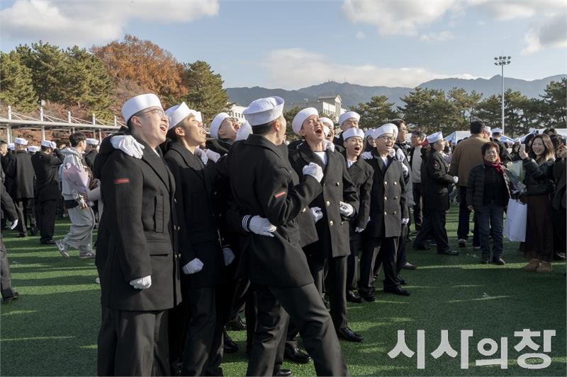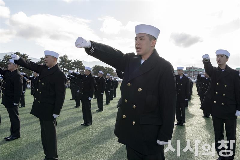 해군교육사령부 강정호 사령관은 축사를 통해 “선배 해군들이 지켜온 조국의 바다를 이어 지키는 숭고한 사명을 완수해 달라”며 “오늘의 각오와 자부심을 간직한 채 전역하는 날까지 최선을 다해주길 바란다”고 당부했다.