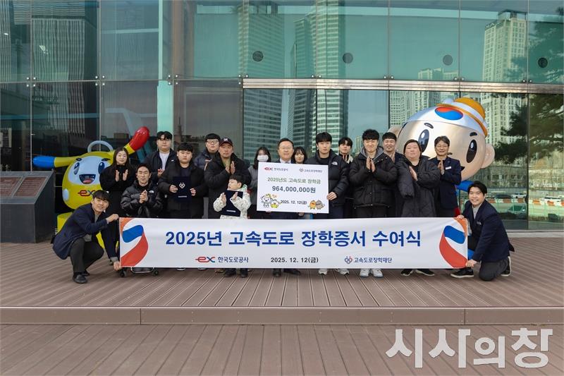 한국도로공사(사장 함진규)와 고속도로장학재단(이사장 이상재)은 "지난 12일 한국도로공사 교통관제센터에서 ‘2025년 고속도로 장학생 증서 수여식’을 개최하고 장학생 262명에게 총 9억 6천 4백만 원의 장학금을 전달했다"고 15일 밝혔다.