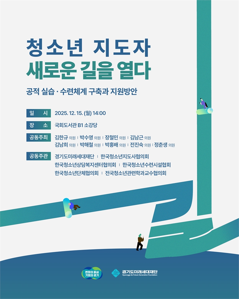 [시사의 창=조상연 기자] 경기도미래세대재단이 여야 국회의원과 청소년 관련 직능단체들과 함께 청소년지도자 공적 실습·수련체계 구축 방안을 논의하는 자리를 마련했다. 2027년부터 청소년지도사 실습이 의무화되는 데 맞춰 현장, 학계, 입법부가 한자리에 모여 실습·수련 지원 방안을 모색했다는 점에서 주목된다.