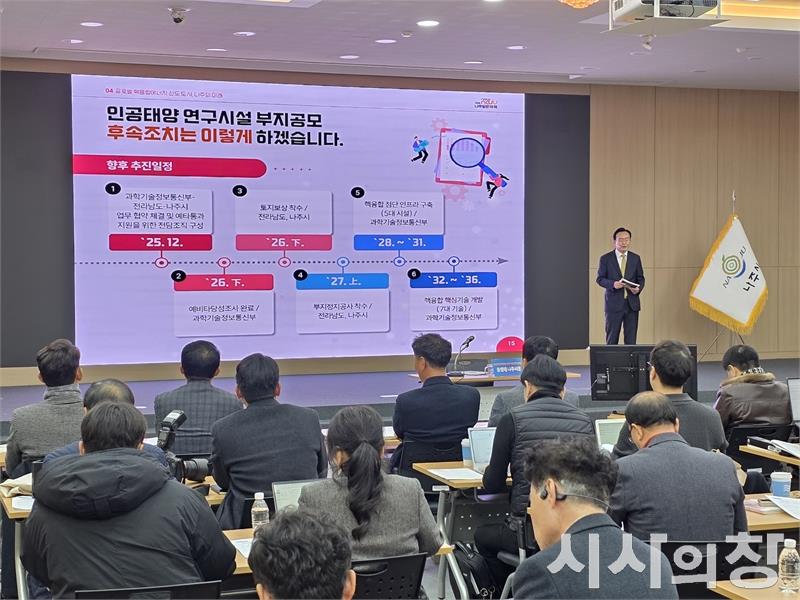 나주시는 16일 시청 대회의실에서 언론인을 대상으로 인공태양 연구시설 유치 설명회를 열고 사업 추진 배경과 기대 효과를 공유했다.