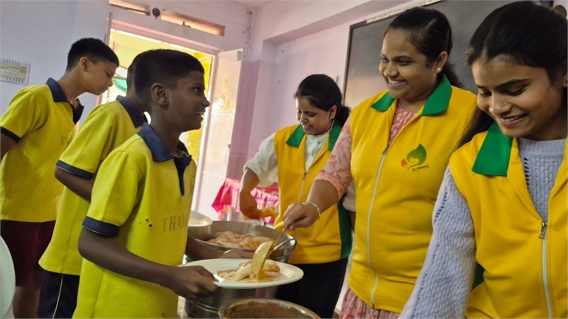 신천지_부산야고보지파_인도_벵갈루루교회의_116기_수료생과_성도들이_수료기념_특별봉사_차원에서_지역에_있는 청소년들에게 식사를 대접하고 있다.
