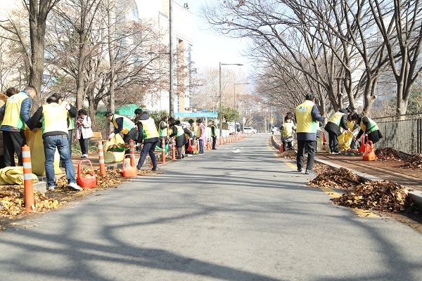 지난 19일_신천지자원봉사단_서울동부지부가_노원구_당현천_일대에서_낙엽을_수거하고_있다.