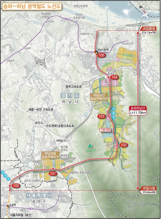 경기도는 송파하남선 기본계획 승인 후 4개월 만에 입찰 방법 심의와 입찰안내서 심의를 마무리하며 신속 행정절차를 밟았다. 사업은 서울지하철 3호선 오금역에서 하남시청역까지 총연장 11.7㎞, 정거장 6개소를 연결하며 하남 감일·교산 신도시를 경유한다. 2027년 상반기 착공, 2032년 개통을 목표로 진행 중이다.