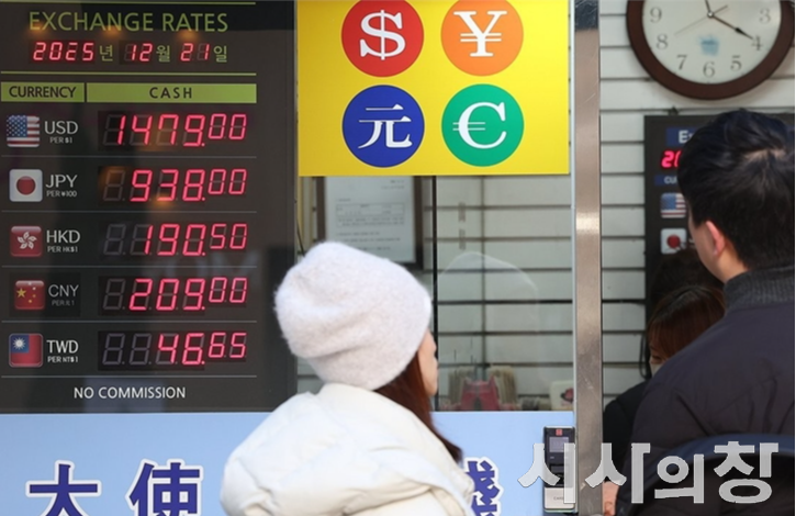 21일 서울 명동의 한 환전소 앞에서 중국인 관광객으로 보이는 한 남성이 환율 현황을 바라보고 있다.