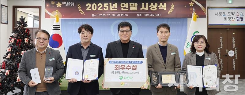 함평군은 29일 “2025년 연말 시상식이 지난 26일 군청 대회의실에서 군민과 공직자 등 100여 명이 참석한 가운데 성황리에 개최됐다”고 밝혔다.[시사의창=오명석 기자]
