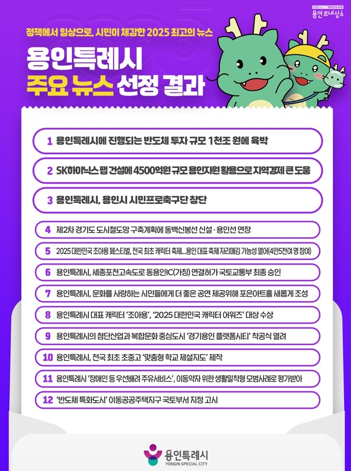 2025년 용인특례시 최고 뉴스 선정 결과(용인시 제공)