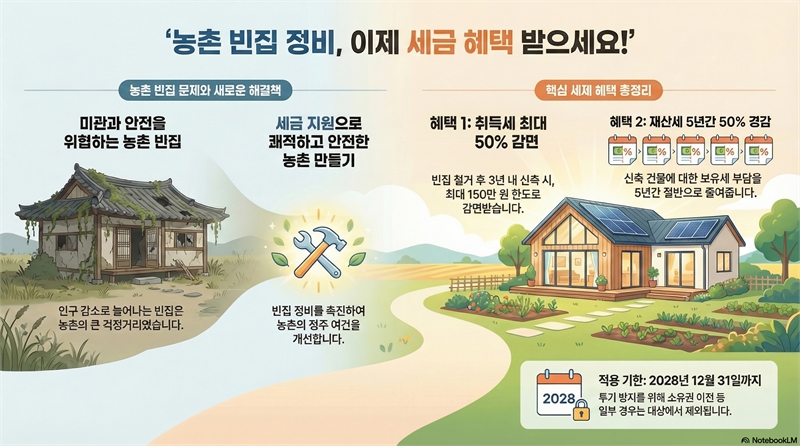 이번 특례는 귀농·귀촌인과 지역 주민들이 경제적 부담 없이 주거 환경을 개선하도록 돕기 위해 신설된 것으로, 오는 2028년 12월 31일까지 한시적으로 적용된다.