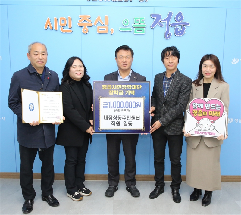 [시사의창=김성민 기자] 정읍시 내장상동 주민센터가 정읍시민장학재단에 장학금 100만 원을 기탁했다. 재원은 2025년 각종 체육대회와 행정평가에서 받은 상금으로 마련됐다.