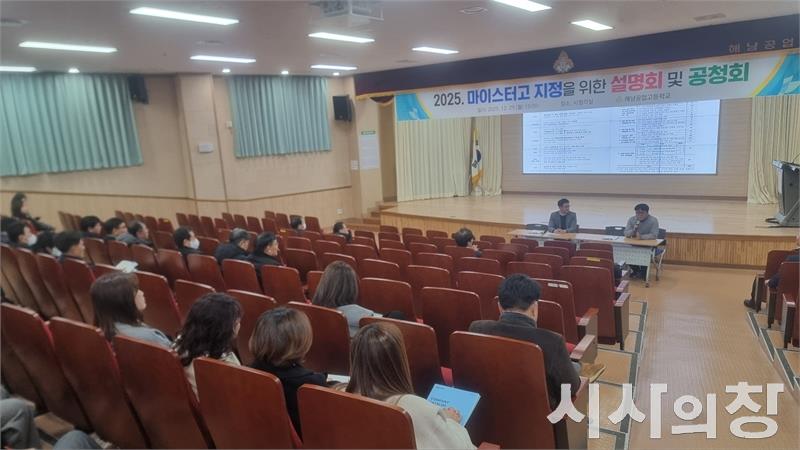 전라남도교육청은 29일 목포공업고등학교와 해남공업고등학교에서 AI특화 마이스터고 전환 추진 설명회를 갖고, 지역 산업수요 맞춤형 인재 양성 방안을 논의했다.이번 설명회는 전남의 AI산업 특화 호재(빅테크 기업 입주 및 인프라 조성)에 따라 두 학교의 성공적인 AI특화 마이스터고 전환을 지원하고, 배움이 일자리로 이어지는 선순환 교육 생태계 기반을 마련하기 위해 추진됐다.사진은 29일 해남공업고등학교에서 ‘마이스터고 지정을 위한 설명회 및 공청회’가 진행되고 있다.[시사의창=송상교기자]