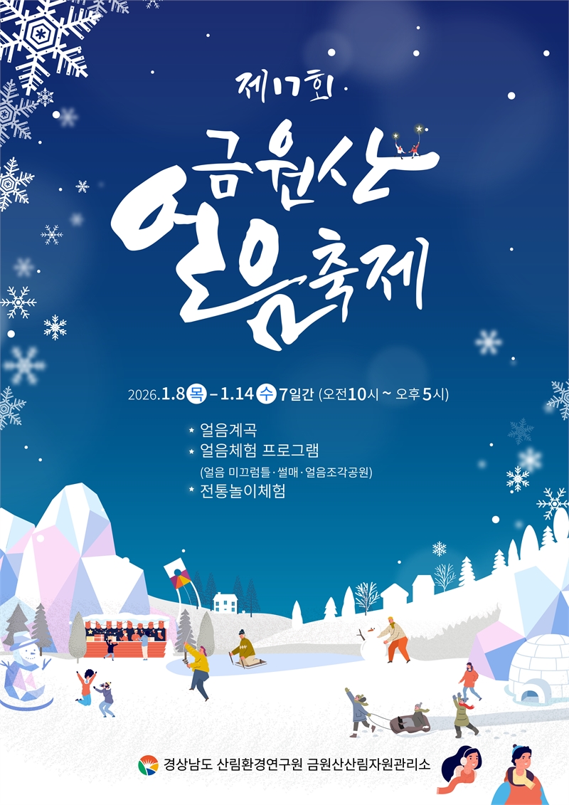 [시사의창=이태헌 기자] 경상남도 금원산산림자원관리소는 겨울철 대표 축제인 ‘제17회 금원산 얼음축제’를 오는 2026년 1월 8일부터 14일까지 7일간 거창군 금원산자연휴양림 일원에서 개최한다고 1일 밝혔다.