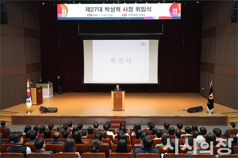 한국관광공사 박성혁 신임 사장의 취임식이 7일 공사 원주 본사에서 열렸다. 박성혁 신임 사장은 취임사를 통해 “외래관광객 3,000만 명 달성이라는 국가적 사명과 대한민국 관광산업의 미래를 위해 최선을 다할 것”이라고 밝혔다.[시사의창=송상교기자]