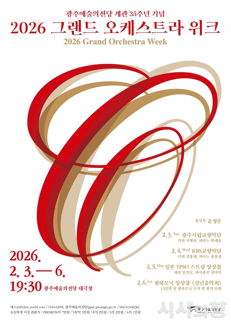 [시사의창=송상교기자] 광주예술의전당은 오는 2월 3일부터 6일까지 4일간 대극장에서 기획공연 ‘2026 그랜드 오케스트라 위크(Grand Orchestra Week)’를 개최한다.
