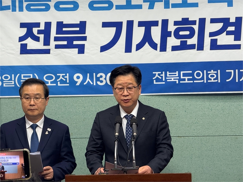 [시사의창=김성민 기자] 더불어민주당 전북 지역 국회의원 안호영(완주·진안·무주)·윤준병(정읍·고창)·한병도(익산을) 의원과 최고위원 보궐선거 후보 이건태 의원(경기 부천병)이 8일 전북특별자치도의회에서 기자회견을 열고, 이재명 대통령을 둘러싼 형사사건을 '정치검찰이 만든 조작기소'라고 규정하며 검찰의 즉각적인 공소취소를 촉구했다.