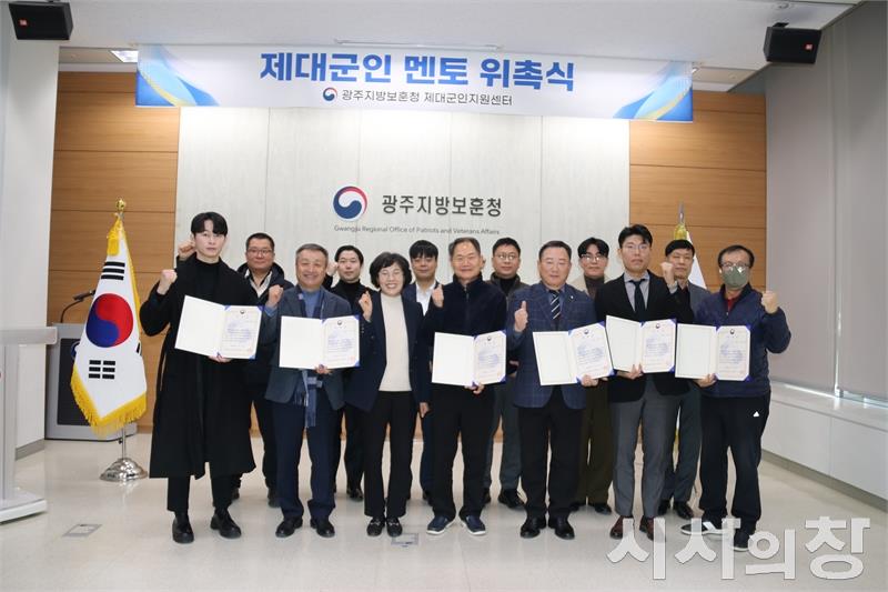 광주지방보훈청 제대군인지원센터는 8일(목), 5년 이상 복무한 중․장기복무 제대군인 중 자기분야에서 탄탄한 기반을 닦아 후배 제대군인에게 길라잡이를 할 수 있는 제대군인 17명을 『2026년도 광주지방보훈청 제대군인지원센터 멘토』로 선정하고 위촉식을 개최했다. [시사의창=송상교기자]