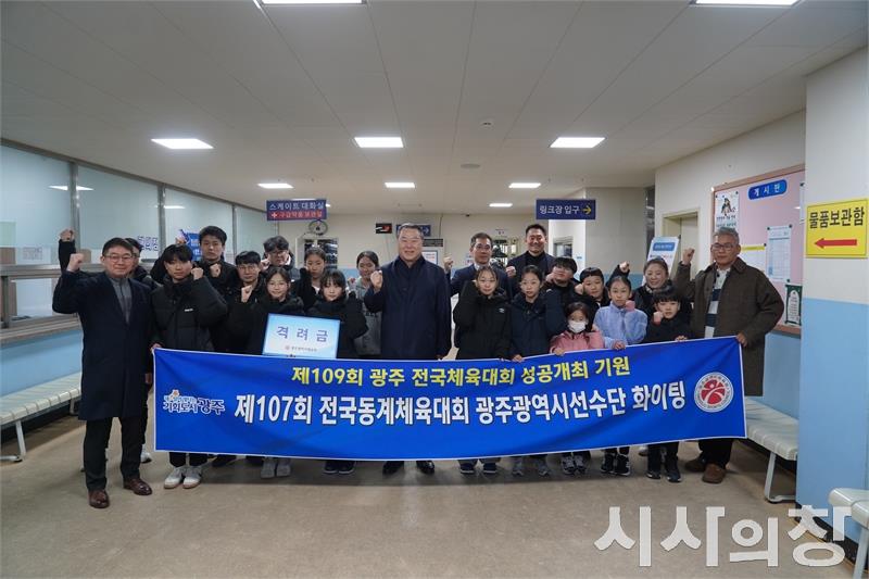 광주광역시체육회(회장 전갑수)는 지난 5일 염주빙상장을 방문해 동계체전 사전경기에 참가하는 빙상 종목 선수와 지도자 등 17명을 격려하고 선전을 기원했다. 이번 방문은 하계 종목에 비해 상대적으로 관심이 부족한 동계 종목 선수들에게 응원의 메시지를 전하기 위해 마련됐다.