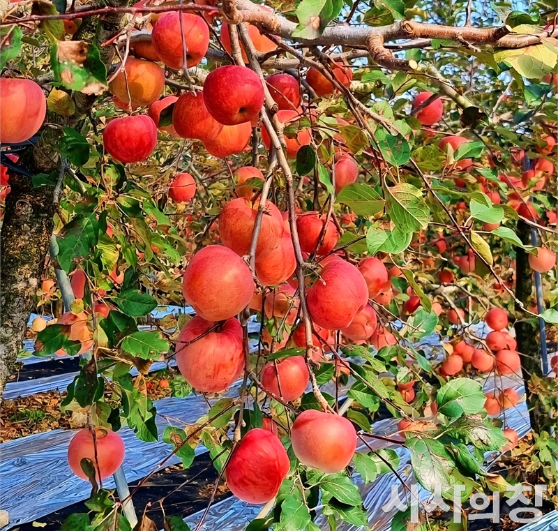 일명 사과마을로 불리는 장선마을의 사과밭 모습./사진=정용일 기자