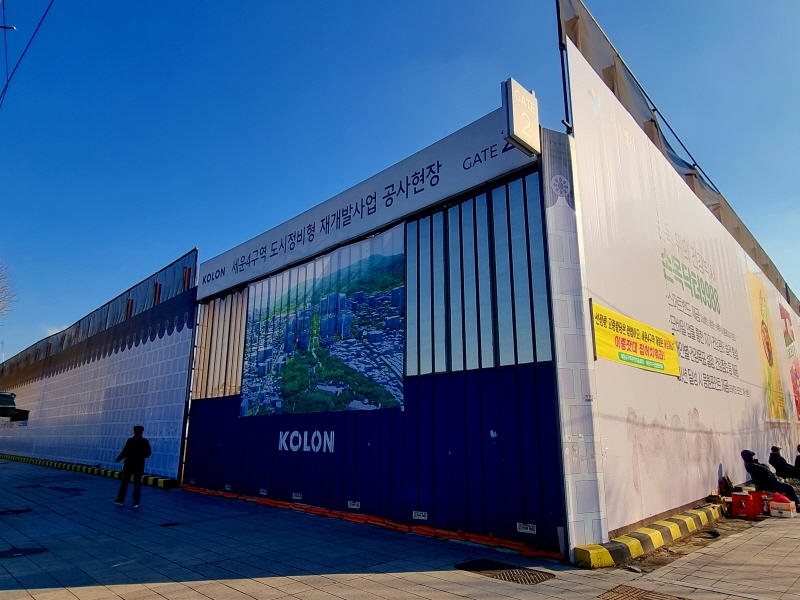 세운4구역 도시정비형 재개발사업 공사현장의 출입문이 굳게 닫혀 있다.