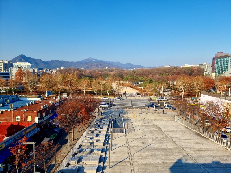 이날은 평일임에도 불구하고 꽤 많은 사람들이 종묘 담장 밑에서 걷고 있었다. 담장을 따라 계속 걷다 보면 종묘 입구가 나온다. 이날 종묘 안에는 단체 외국인 관광객들로 보이는 20여명이 한 곳에 모여 누군가의 설명을 듣고 있었다. 종묘에서 누군가의 설명에 집중하고 있는 외국인들에게도 도심 속 한가운데의 종묘는 상당히 매력적인 장소로 여겨지는 듯했다. 종묘를 등지고 반대편을 바라보면 정면으로 세운상가와 좌측에 종로3가 세운4구역 도시정비형 재개발사업 공사현장이 보이고, 우측으로 세운2구역 재개발 사업지가 보인다.