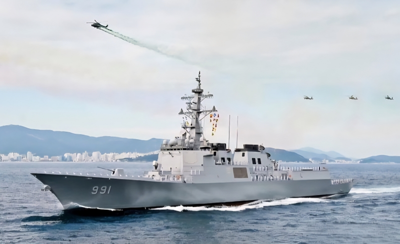 한국 최초 이지스 구축함으로 7,600톤급인 세종대왕함 모습. [해군 제공]