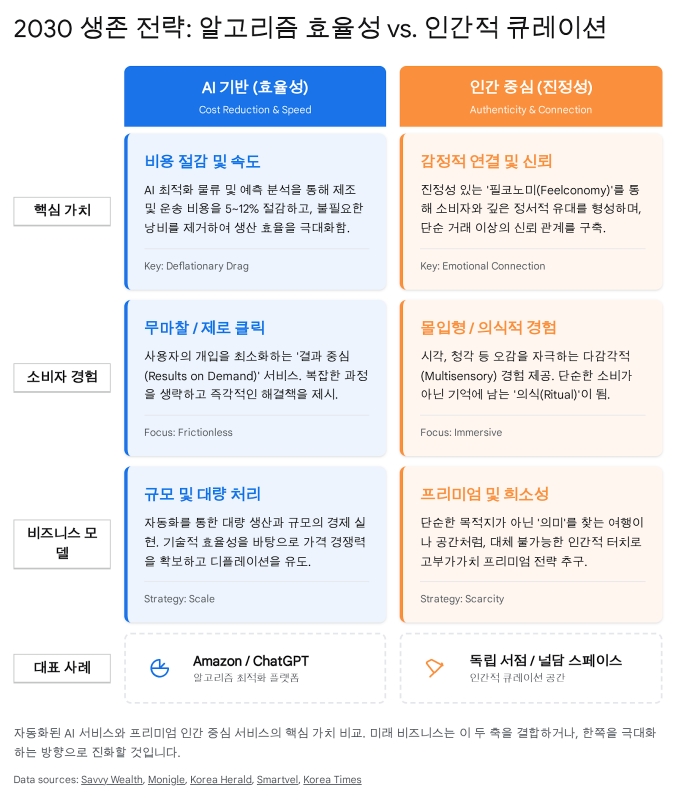 ‘No-AI’ 마크는 현재의 ‘유기농(Organic)’ 마크처럼 프리미엄의 상징이 될 수 있다. 기업은 AI를 통해 운영 효율을 극대화하되(Back-end), 고객과의 접점(Front-end)에서는 인간적인 온기를 극대화하는 양면 전략을 구사해야 한다.