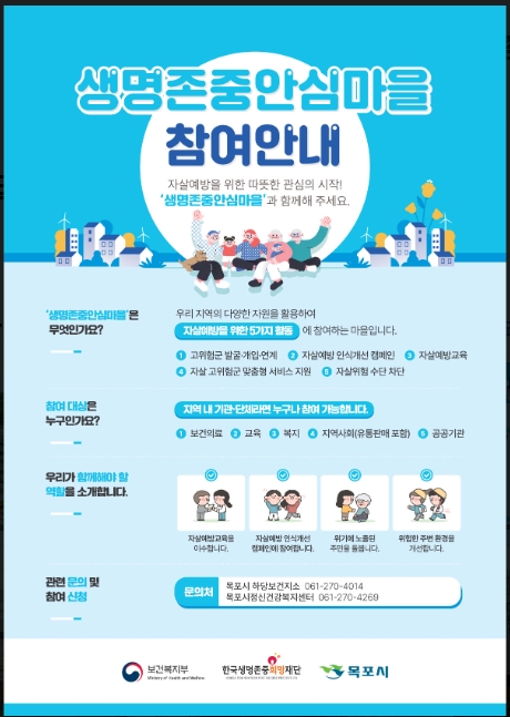 목포시, ‘생명존중 안심마을’ 본격 추진..참여기관 모집 시작