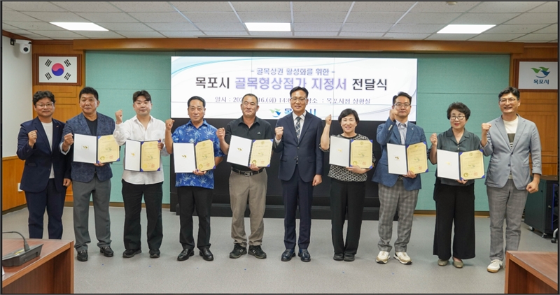 [시사의창=장성대 기자]전남 목포시가 골목상권 활성화를 위한 첫 발걸음을 내디뎠다. 목포시는 16일 시청에서 ‘골목형상점가 지정서 전달식’을 열고, 지역 내 7개 상권을 ‘골목형상점가’로 최초 지정했다.이번에 지정된 골목형상점가는◆역전 뒷골목 상점가◆평화광장 원형로 골목형상점가◆금호사랑 골목형상점가◆목포활어회플라자 골목형