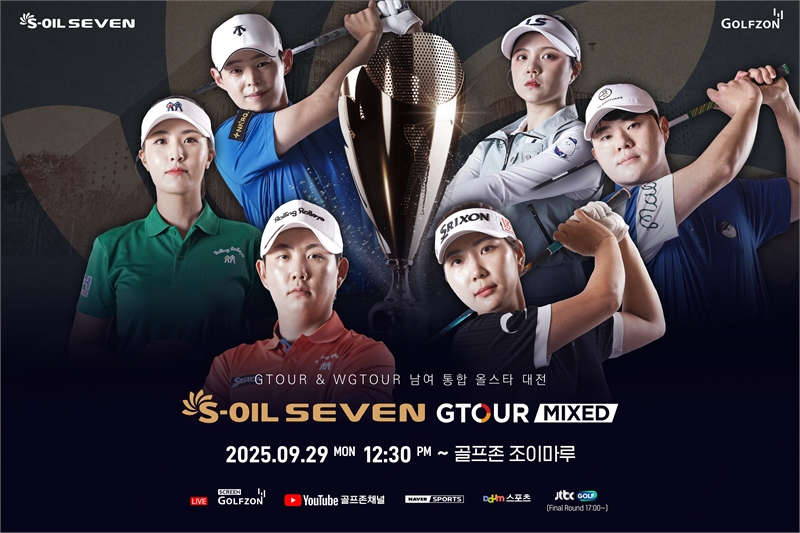 [시사의창=김성민 기자] 골프존이 오는 9월 29일(월) 대전 골프존조이마루에서 시즌 세 번째 혼성전 ‘2025 S-OIL SEVEN GTOUR MIXED’ 3차를 연다.대회는 컷 탈락 없이 하루에 2라운드 36홀 스트로크로 승부를 가르는 원데이 방식이며, 총상금은 8천만 원, 우승상금은 1천7백만 원이다. 코스는 현장