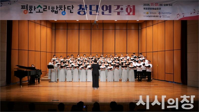 [시사의창=송상교기자] 전라남도(도지사 김영록)는 "분단의 아픔을 치유하고 한반도 평화와 화합의 메시지를 전하기 위한 ‘전남도 평화소리합창단’ 창단 연주회가 1일 목포문화예술회관에서 성황리에 열렸다"고 2일 밝혔다. 이날 연주회에는 도민과 북한이탈주민, 이북도민 등 다양한 계층이 함께 참여해 음악으로 하나 되는 감동의