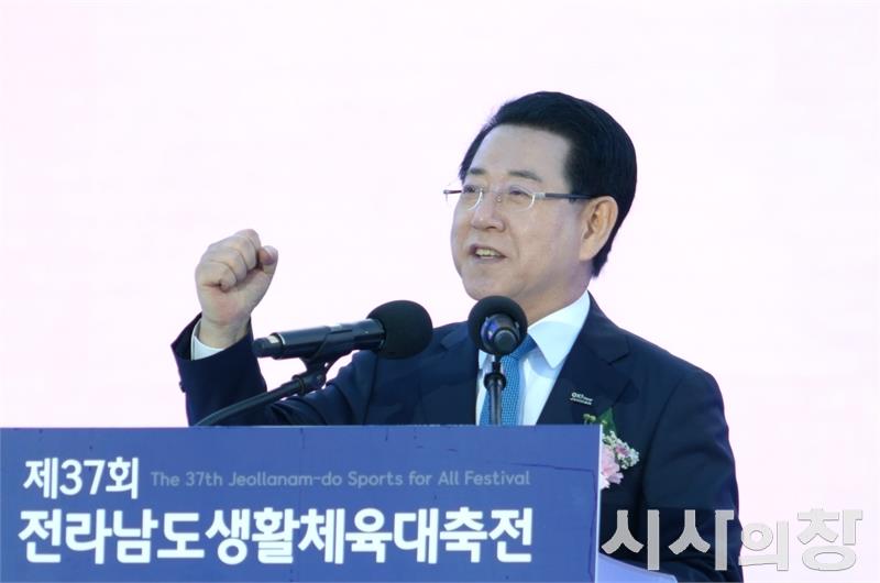 [시사의창=송상교기자] 전남도민이 함께 즐기는 최대 생활체육 축제인 ‘제37회 전라남도 생활체육대축전’이 25일 영광공설운동장에서 개막했다. 이번 대회는 오는 27일까지 3일간 영광군 일원에서 열리며, 축구·궁도·야구·테니스 등 24개 종목에서 생활체육 동호인 2만여 명이 참가해 열띤 경쟁을 펼친다. ‘뭉쳐라! 전