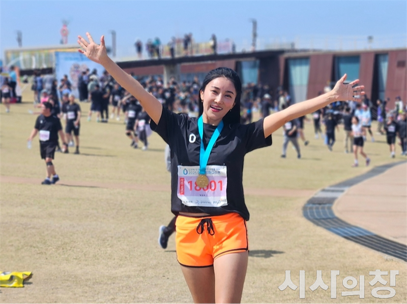 [시사의창=김성민 기자] 배우 김도이가 20일 개최된 ‘2025 DMZ평화마라톤’에 연예인런닝크루로 참가해 10km 코스를 50분대 기록으로 완주했다. 김도이는 완주 직후 메달을 목에 걸고 환한 미소로 기념촬영에 임했다.이번 DMZ평화마라톤은 평화를 기원하는 취지로 비무장지대 일원에서 열렸으며, 김도이를 비롯해 박형준,