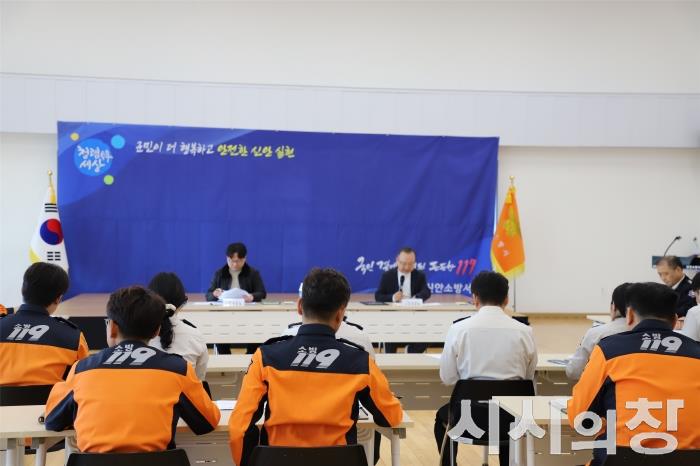 [시사의창=송상교기자] 신안소방서(서장 고상민)가 조직 내부의 청렴도 향상과 지역사회 안전문화 확산을 위해 두 가지 중점 행사를 연속 개최하며 눈길을 끌고 있다. 신안소방서에 따르면 "「2025년 청렴‧소통 정담회」와 ‘2025 신안 소방활동전시회’를 각각 진행하며, 조직혁신 실천과 도서지역 재난 대응역량 강화라는 두