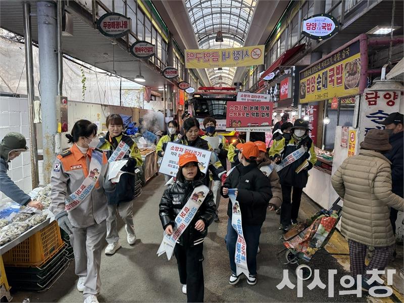 [시사의창=송상교기자] 광주광역시 북부소방서(서장 황인)는 겨울철 화재예방대책의 일환으로 한국119청소년단과 함께 ‘소방차 길터주기’ 합동 훈련을 실시하며 지역 안전문화 확산에 나섰다. 이번 훈련은 말바우시장에서 진행됐으며, 화재·구조·구급 출동 시 골든타임 확보의 중요성을 시민에게 알리고 실천을 유도하기 위한 취지로