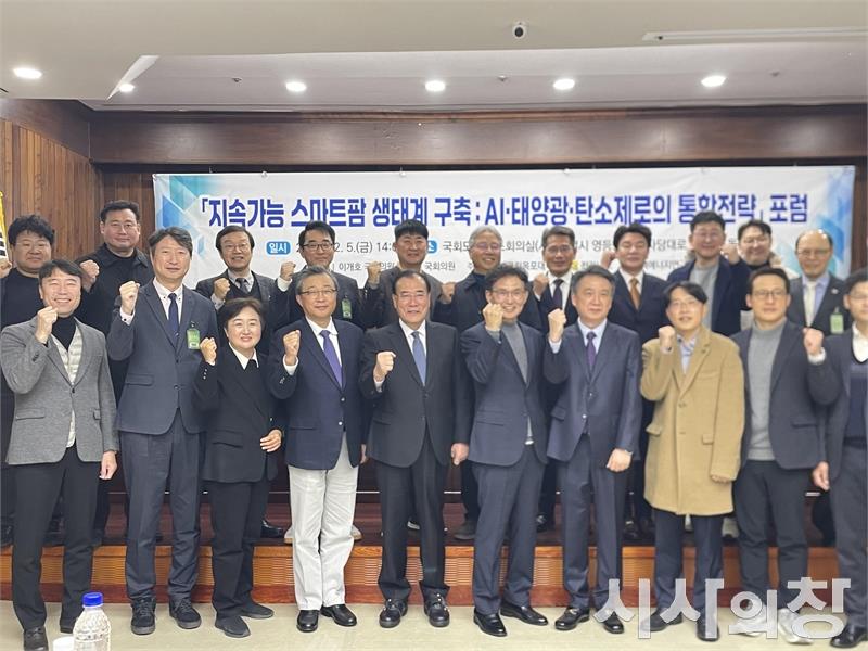 [시사의창=송상교기자] 기후 위기와 농촌 고령화로 농업의 미래가 전환점을 맞고 있는 가운데, 국회에서 농업을 식량 생산 산업을 넘어 에너지·기술 산업으로 확장하는 전략이 제시됐다.더불어민주당 이개호 국회의원(전남 담양·함평·영광·장성)은 5일 국회도서관 소회의실에서 ‘지속가능 스마트팜 생태계 구축, AI·태양광·탄소제로의