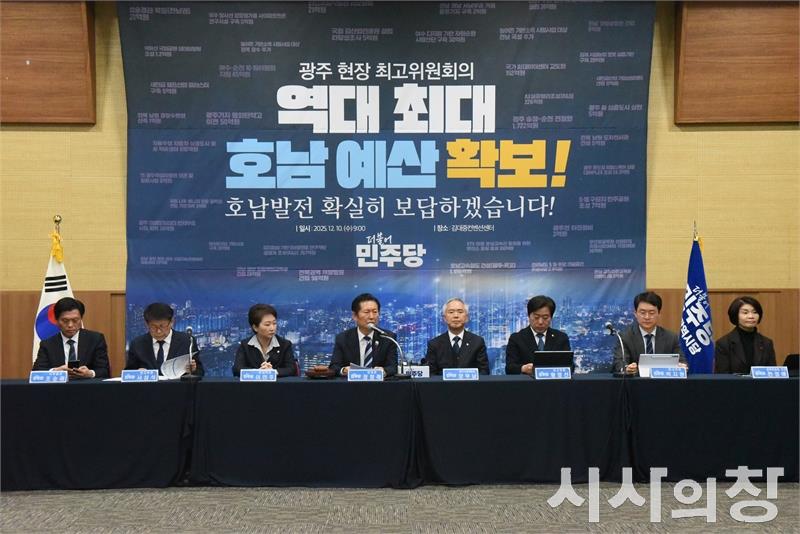 [시사의창=송상교기자] 더불어민주당이 10일 광주 김대중컨벤션센터에서 제194차 현장 최고위원회를 개최하고, 민주주의 회복과 호남 미래전략, 2026년 예산 성과를 중심으로 지역 현안 논의를 진행했다.정청래 대표를 비롯한 민주당 지도부, 양부남 시당위원장, 광주·전남 주요 인사들이 참석해 최근 12·3 불법계엄 사태와 내
