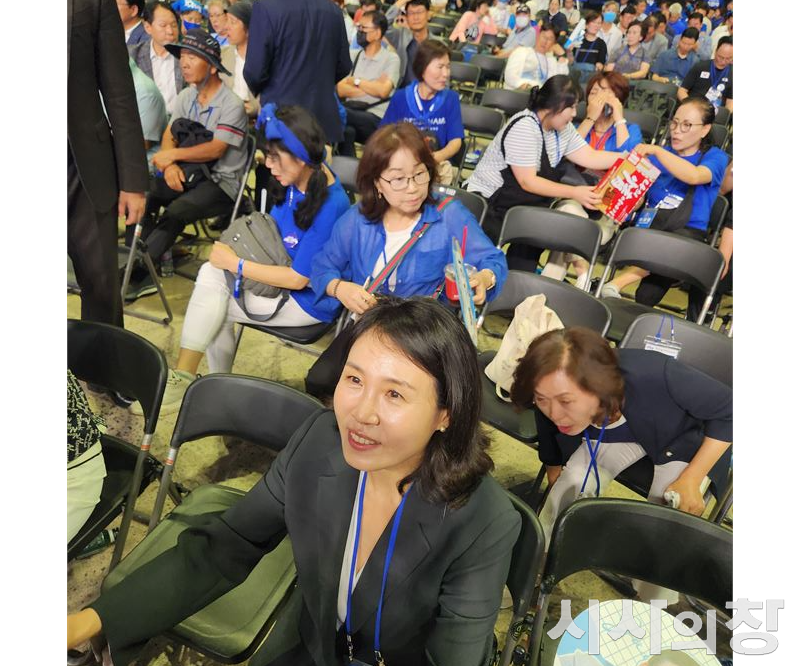 [시사의창=김성민 기자] 지난 18일, 서울 잠실 올림픽체조경기장(KSPO DOME)에서 열린 더불어민주당 제1차 정기전국당원대회장에서 이재명 후보의 부인 김혜경 여사가 인기녀로 등극했다.사실상 이재명 후보의 당 대표 연임이 확정된 가운데 전당대회에 참석한 김혜경 여사와 사진을 찍기 위해 당원과 지지자들이 길게 서있는
