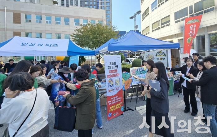 [시사의창=소순일기자] 임실군이 대한민국 대표 치즈 브랜드 ‘임실N치즈’를 앞세워 부산 소비자 공략에 나섰다. 군은 27일부터 28일까지 이틀간 자매결연 도시인 부산광역시 부산진구에서 열린 김장철 맞이 농축산물 직거래장터에 참여해, 치즈와 유제품 판촉은 물론 고향사랑기부와 SNS 홍보까지 병행하며 임실의 매력을 적극