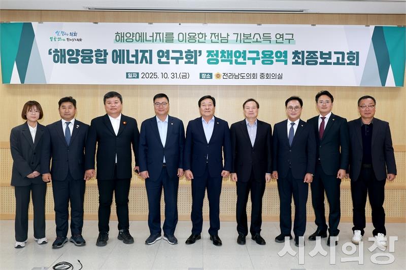 [시사의창=송상교기자] 전라남도의회 의원 연구단체인 ‘해양융합 에너지 연구회(대표의원 정길수)’가 전남의 해양에너지 자원을 활용한 ‘전남형 해양에너지 기본소득’ 정책 모델을 제시했다. 전라남도의회 의원 연구단체인 해양융합 에너지 연구회는 지난 10월 31일 도의회