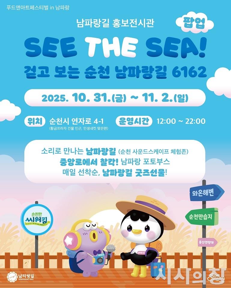 [시사의창=신민철 기자] 순천시(시장 노관규)가 푸드앤아트페스티벌이 열리는 중앙로 일대에 ‘남파랑길 홍보 전시관’을 설치해, 도심 속에서도 순천만의 자연을 소리로 체험할 수 있는 ‘사운드체어(Sound Chair)’를 선보였다. 이번 전시관은 10월 31일부터 11월 2일까지 운영되