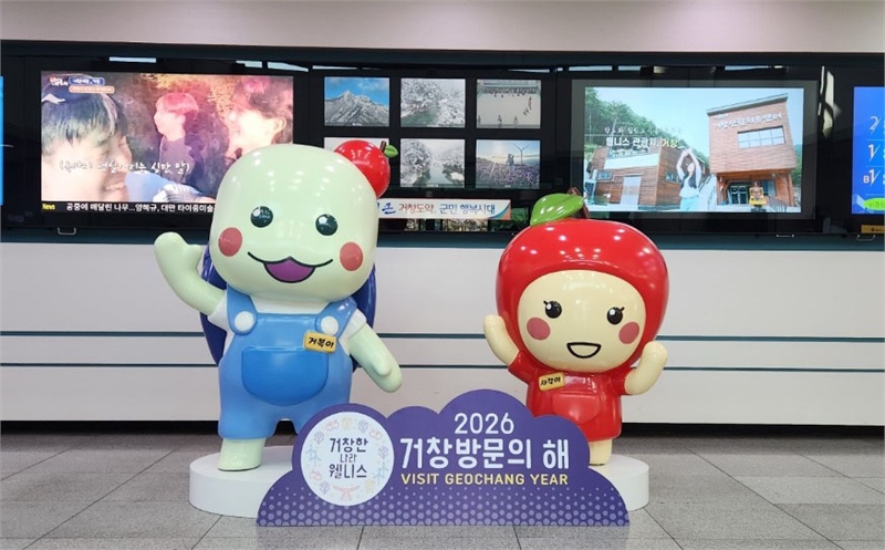 [시사의창=이태헌 기자]경남 거창군이 관광캐릭터 ‘거복이’와 ‘사각이’ 조형물을 군청 1층 로비에 설치하고 본격적인 관광 홍보에 나섰다. 이번 조형물 설치는 ‘2026 거창 방문의 해’ 분위기 조성과 관광도시 이미지 제고를 위한 행보다.설치된 조형물은 높이 1.5m의 거복이와 1.3m의 사각이로, ‘거창 방문을 환영한다’