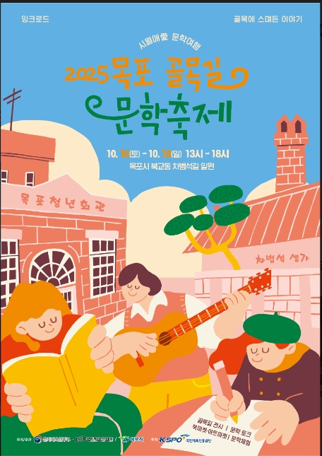 [시사의창=장성대 기자]문학의 도시 목포가 문학을 쉽고 재미있게 즐길 수 있는‘2025 목포 골목길 문학축제’를 개최한다.이번 축제는 10월 18일부터 19일까지 오후 1시부터 6시까지, 목포 문학의 중심지 북교동 차범석길 일대에서 열린다. 목포 골목길 문학축제는 국립한국문학관과 문화체육관광부가 주최, 국민체육진흥공단이