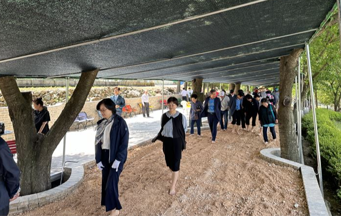맨발길 조성을 올해 지난 3월 착공, 예산절감을 위해 추모공원을 재단장하면서 발생한 보도블럭을 재활용해 주변 경관과 어울리게 조성했다.