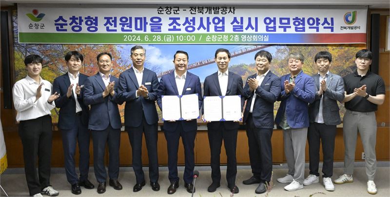 순창군이 28일 군청 2층 영상회의실에서 민선 8기 역점 사업인 순창형 전원마을 500호 조성사업의 내실 있는 추진을 위해 전북개발공사와 공동 추진을 약속하는 업무협약을 체결했다고 밝혔다.