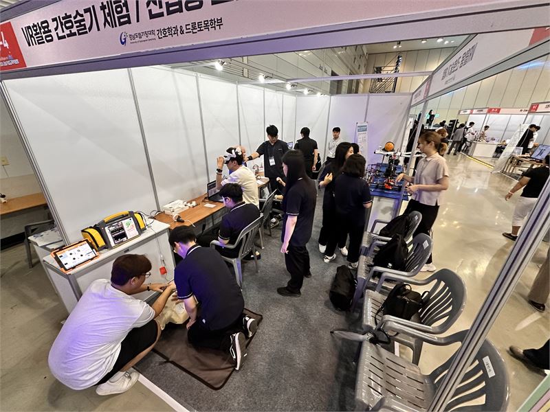 간호학과에서는 심폐소생술 교육을 진행하여 실제 응급상황이 발생했을 때 일련의 과정을 가상현실에서 훈련할 수 있는 의료 체험 기회를 제공하였고, 드론토목학부에서는 다양한 산업용 드론을 관람하며 드론실기비행 조종 시뮬레이션 체험을 할 수 있는 부스를 운영하였다.