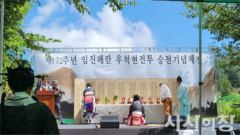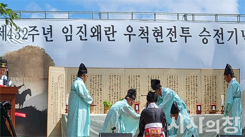 [시사의창=이태헌 기자]임진왜란 당시 산척꾼(사냥꾼)이 활약한 의로운 전투인 우척현 전투 승전을 기리는 기념제전이 16일 거창군 웅양면 어인마을에서 열렸다.