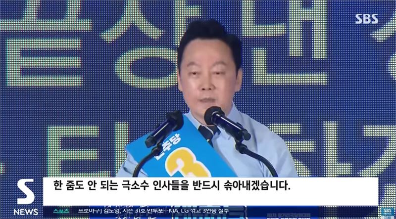 이른바 명팔이를 솎아내야 한다고 주장하는 정봉주 최고위원 후보(사진_SBS 캡처)