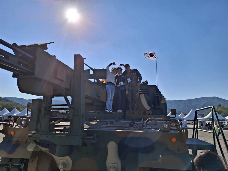 대형 전세버스 2대를 이용한 이날 안보현장 견학 행사는 충남 논산시에 위치한 백제군사박물관과 계룡시 계룡대 비상활주로에서 열린 KADEX 2024 대한민국 국제방위산업 전시회 등을 둘러보고 고공강하와 블랙이글스 비행을 참관했다.