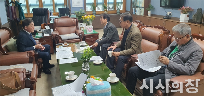 [시사의창=이태헌 기자]'더 나은 거창대학을 위한 거창군범군민사회단체 대표자 연대(범사련)' 김칠성 상임집행위원장과 대표들은 21일 거창군의회 이재운 의장의 초청을 받아 거창군의회를 방문, 거창군의회에 8개항의 요구사항이 담긴 입장문을 전달하고 거창대학 통합은 반드시 주민요구사항이 담긴 이행계획과 이행협약에 의해 진행될 수 있도록 거창군의회가 앞장서 줄 것을 당부 했다.